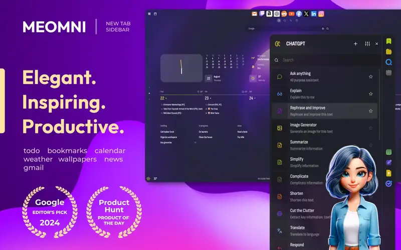 Meomni AI – браузерное расширение, которое интегрируется в браузер и расширяет его функционал, помогая пользователям анализировать данные и планировать задачи с помощью искусственного интеллекта.
