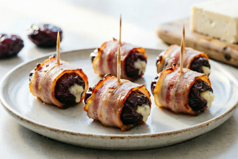 Если хочется удивить гостей без сложной готовки, этот рецепт — настоящая находка. Сочетание сладкого чернослива, соленого бекона и нежного сыра даёт яркий вкус и эффектную подачу. Такая закуска всегда исчезает со стола одной из первых.