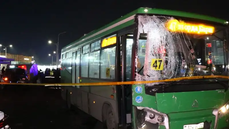 "Автобус следовал по проспекту Райымбека в западном направлении, в районе городской больницы №7. За рулем была женщина. Один из пассажиров напал на неё и стал душить. Она потеряла управление. Автобус потащило в сторону обочины, в сторону остановки. По пути автобус врезался в автомобиль марки Mazda, затем в Mitsubishi и микроавтобус, позади которого стоял водитель этой машины. Автобус сбил этого водителя, а также людей, которые стояли на остановке", — рассказал очевидец.