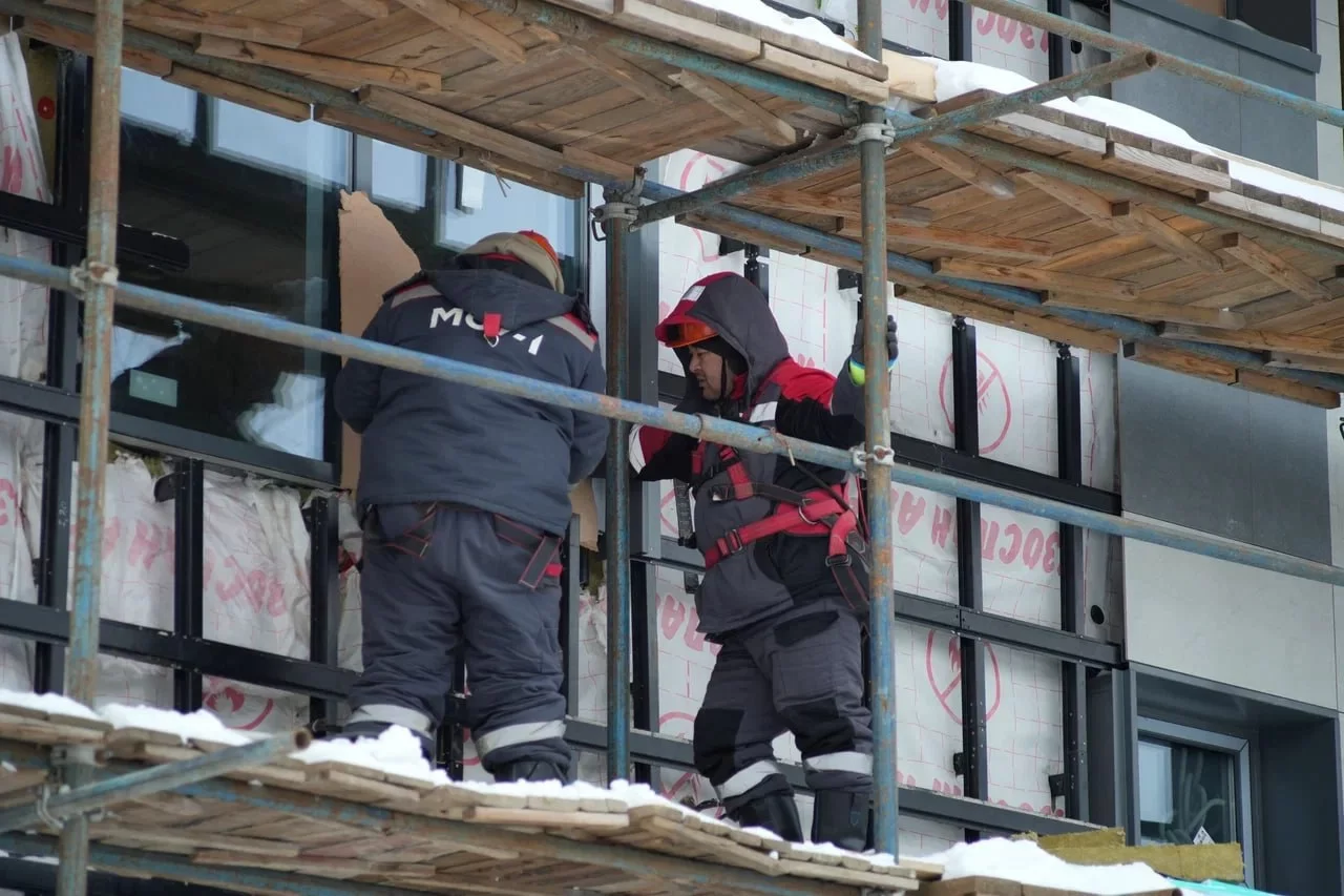 В настоящий момент на объекте ежедневно задействованы свыше 170 рабочих, общая строительная готовность комплекса составляет 59%. На данном этапе специалисты возводят внутренние перегородки, прокладывают инженерные сети, устанавливают оконные конструкции. Одновременно ведутся работы по монтажу вентилируемого фасада.