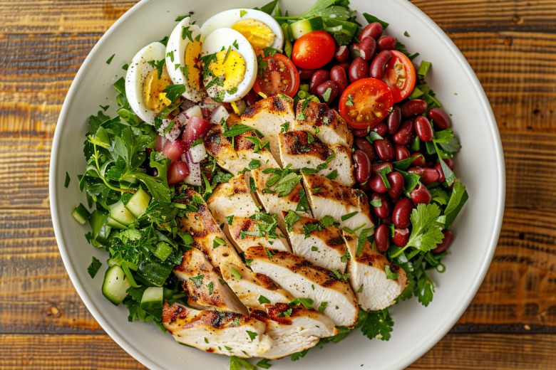 Этот салат — находка для тех, кто хочет сытно поесть без лишней тяжести. В нём много белка, поэтому он отлично подходит и для восстановления, и для лёгкого ужина. А благодаря овощам вкус получается свежим и совсем не «скучным».