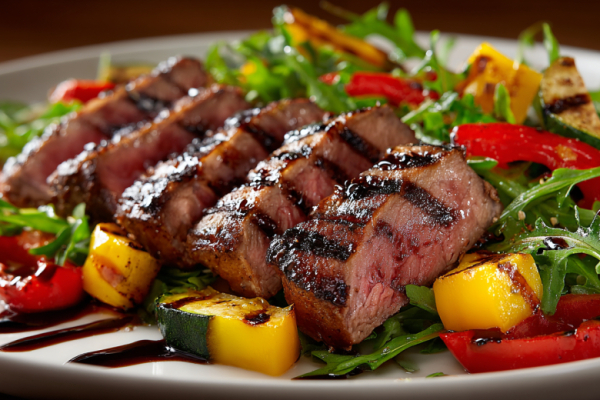 Тёплый салат с говядиной и овощами гриль
